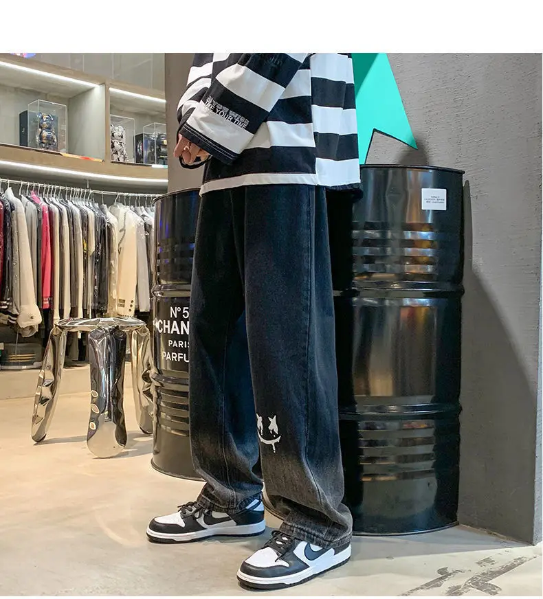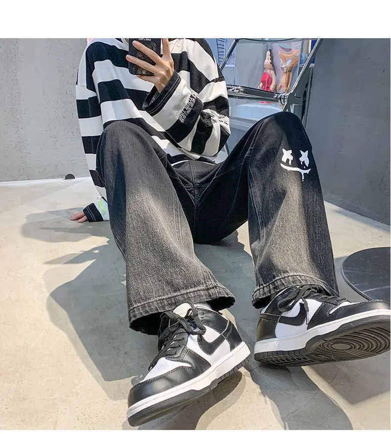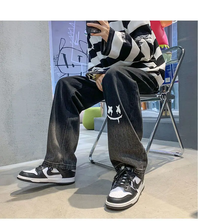 Jean baggy en coton noir imprimé : confort et style inégalés