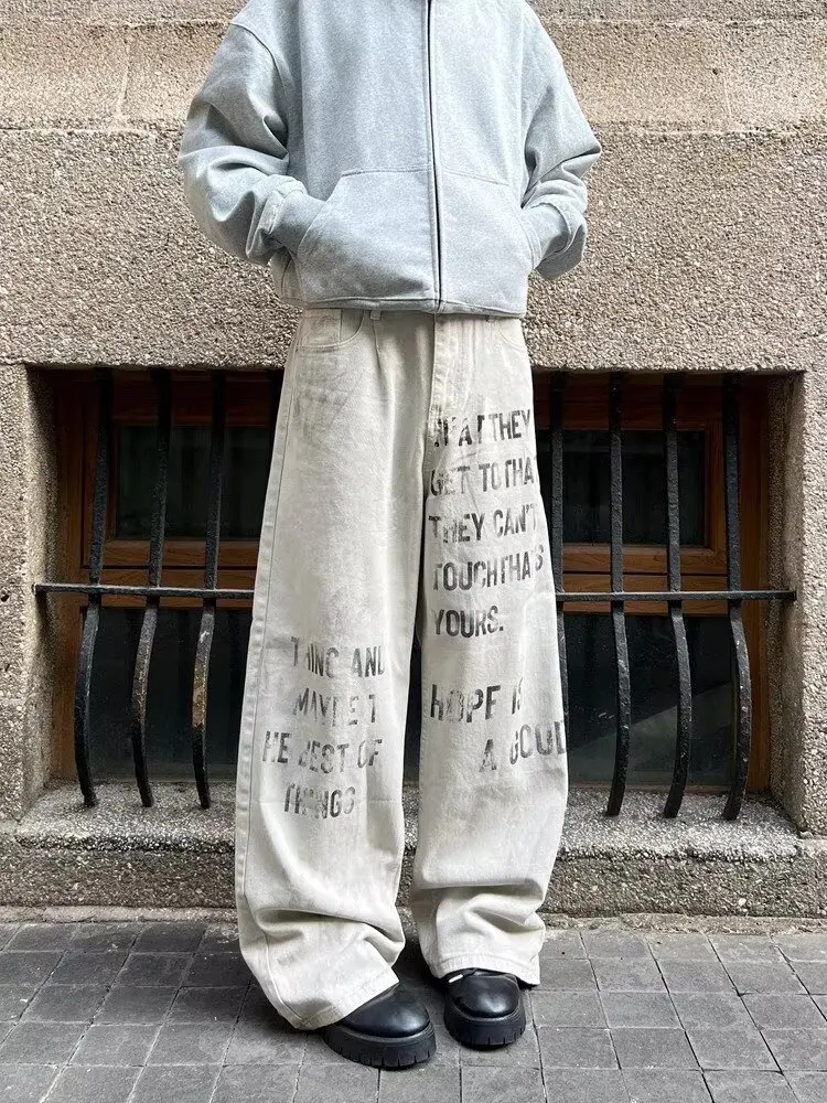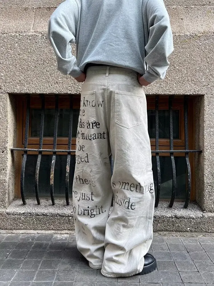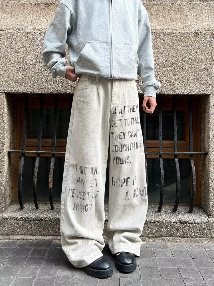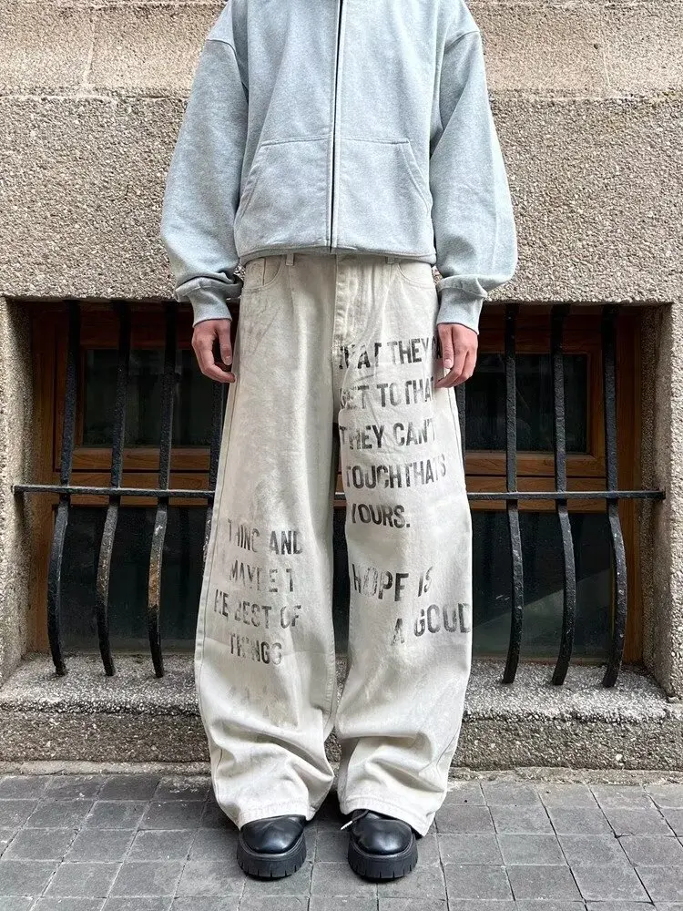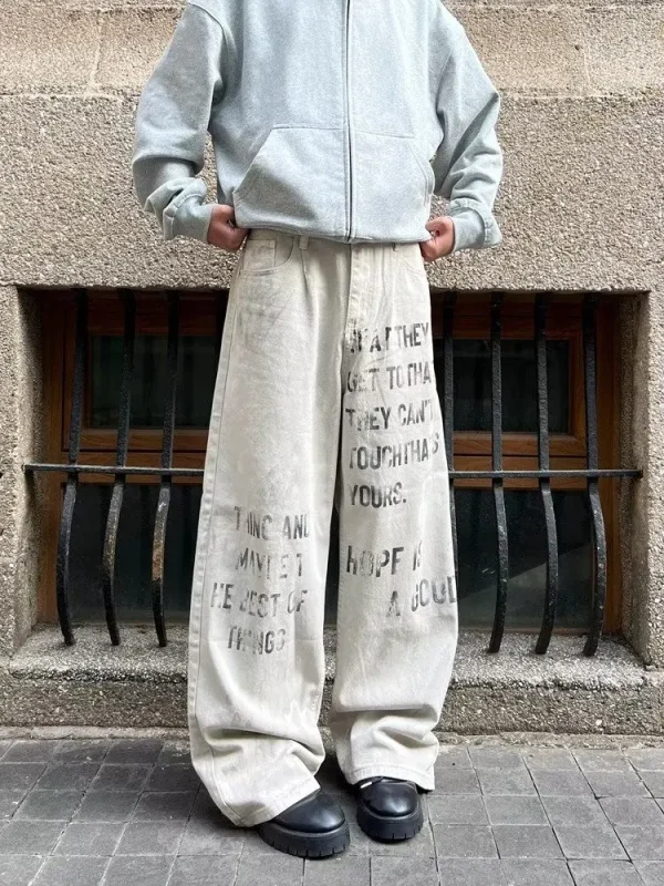Jean baggy streetwear blanc vintage pour un style unique