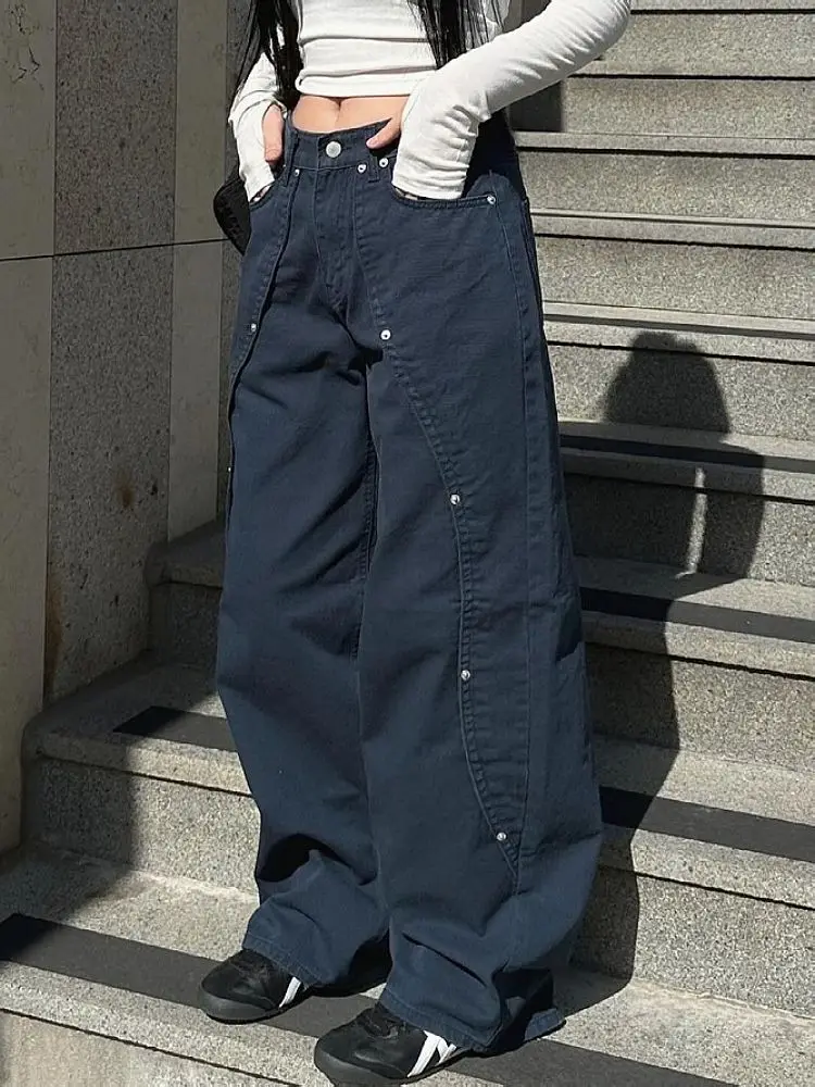Jean large en coton bleu marine, un indispensable de votre garde-robe