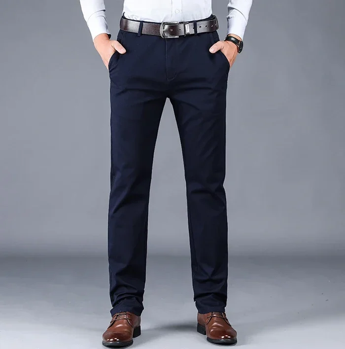 Pantalon chino droit en coton bleu marine : alliance parfaite de qualité et durabilité