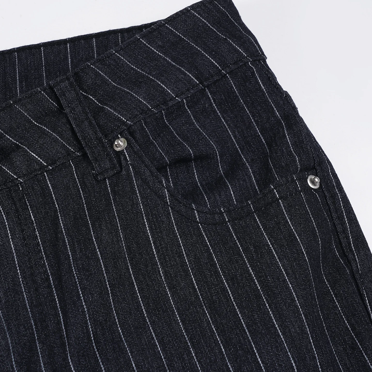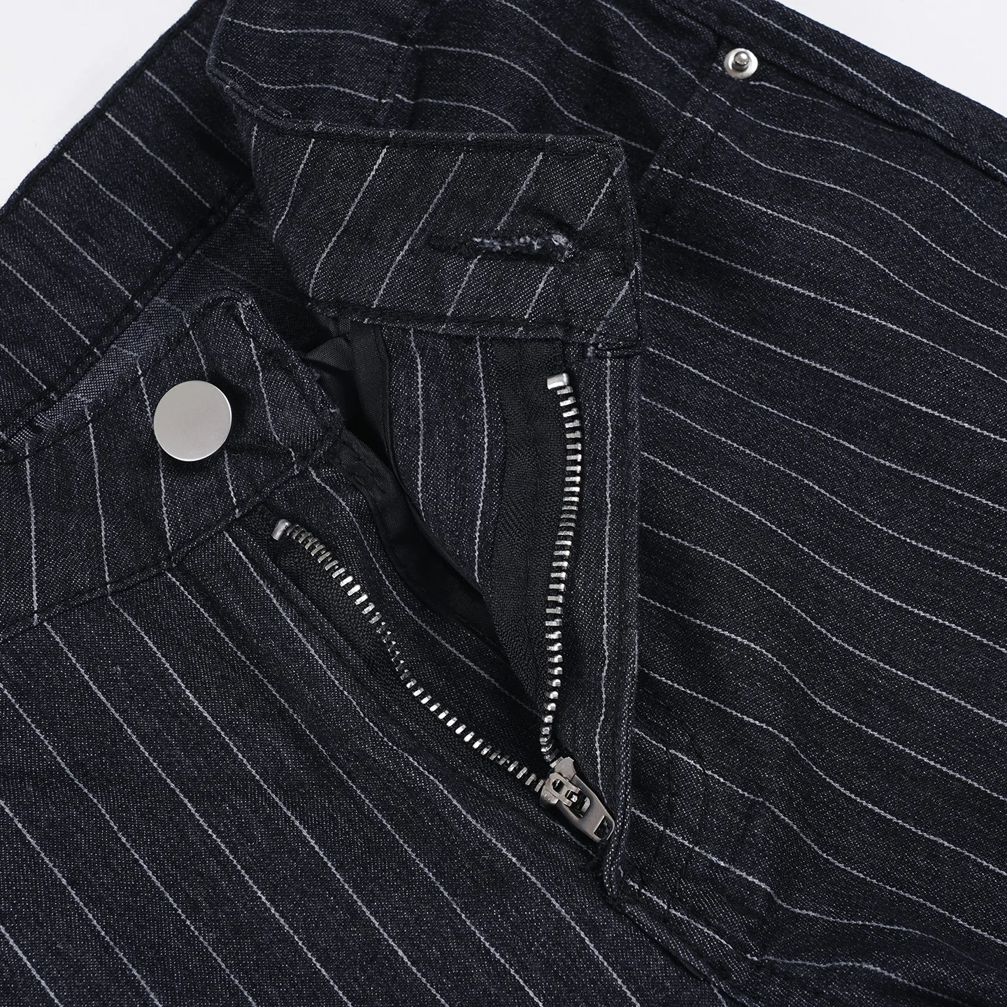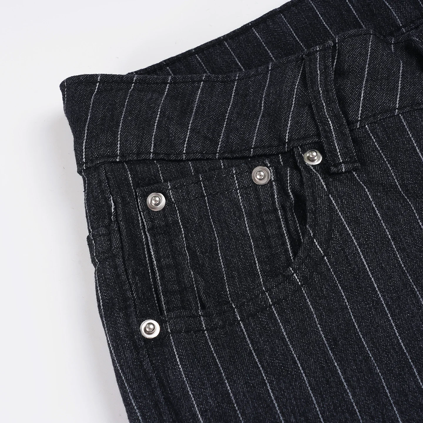 Découvrez le pantalon flare taille basse en coton noir rayé pour un look chic et audacieux.